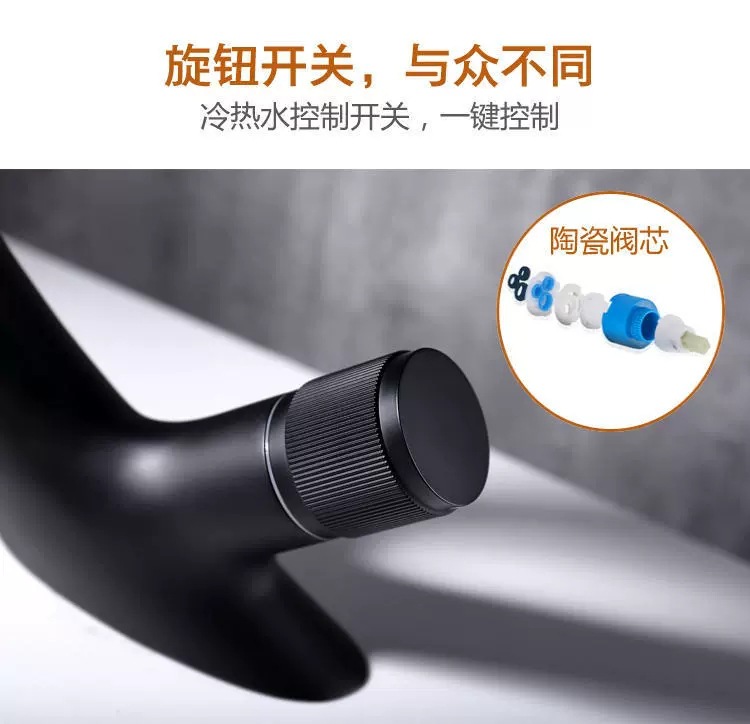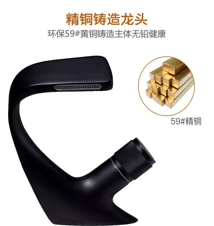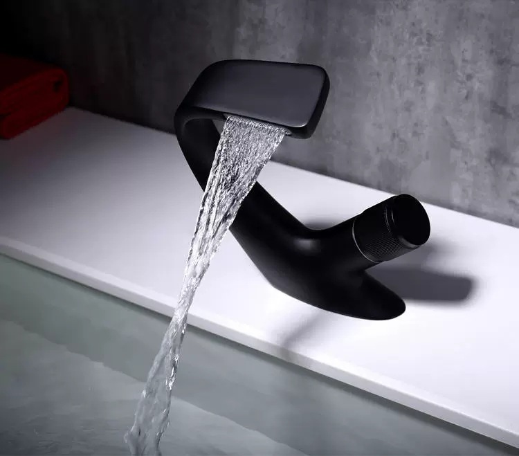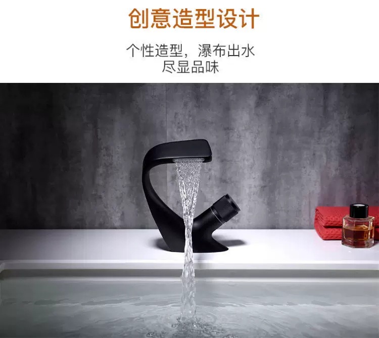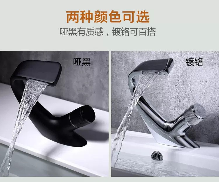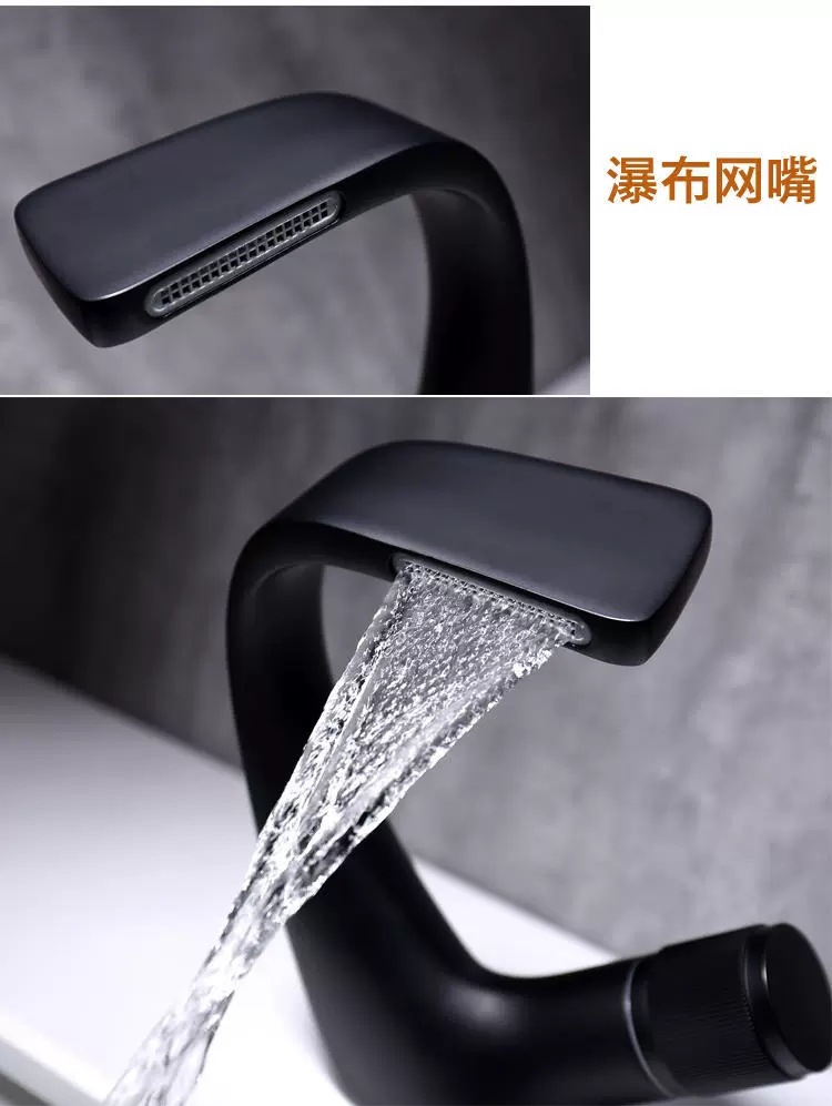 Copper Black Washbasin Waterfall Faucet Hot and Cold Bathroom Light Luxury Basin Drop-in Sink Single Hole Basin Faucet