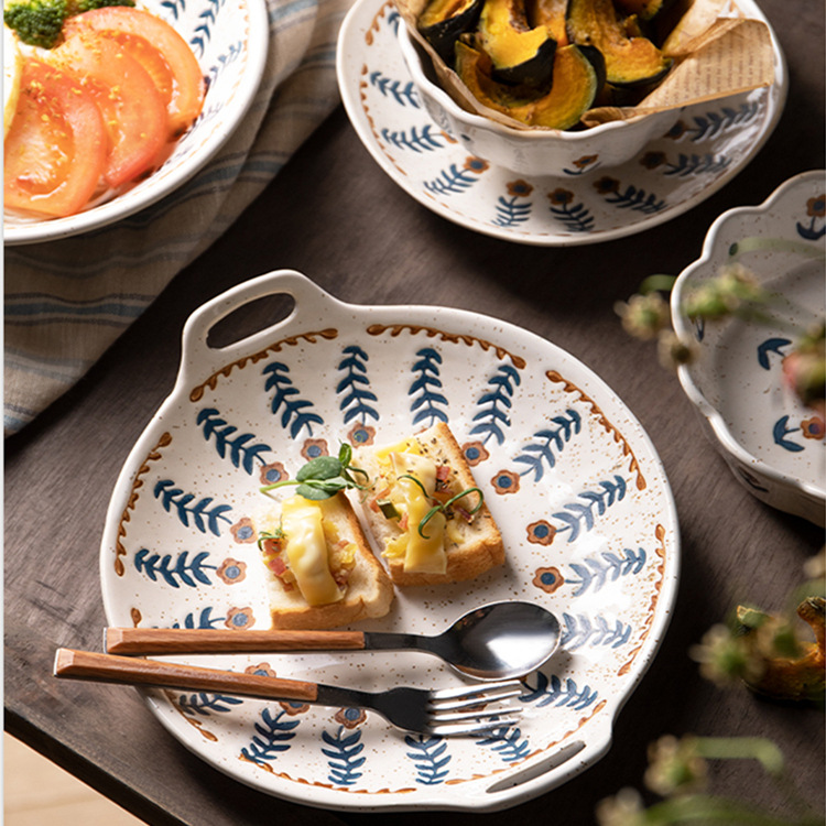 japanese style tableware ceramic bowl plate stoneware dinner plate household bowl dishes set plate bowl binaural