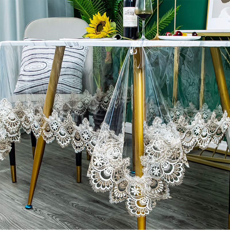 thin drooping transparent tablecloth pvc soft glass table cloth waterproof easy to clean tablecloth transparent embroidered edge tablecloth