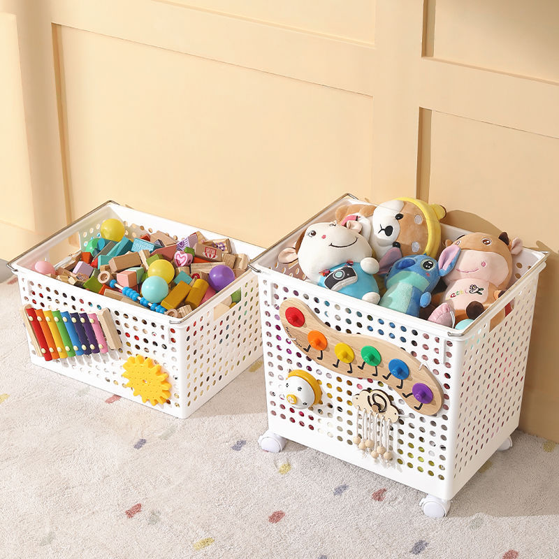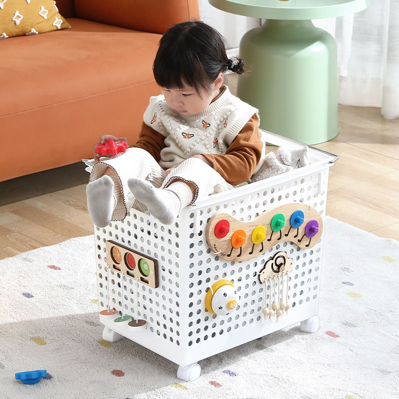 White Toy Storage Basket: large/Wheeled Cart/Hole Hanging Toy