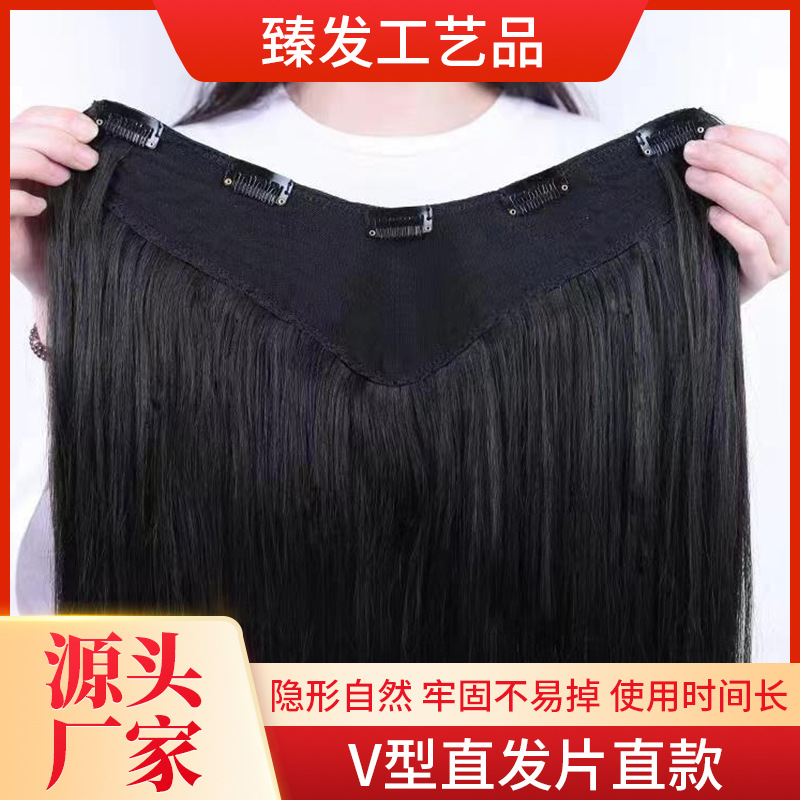 Wig Set Artificial Hair One-Piece V-Shaped Straight Hair Hair Extension Head Seamless Long Straight Hair Wig for Women