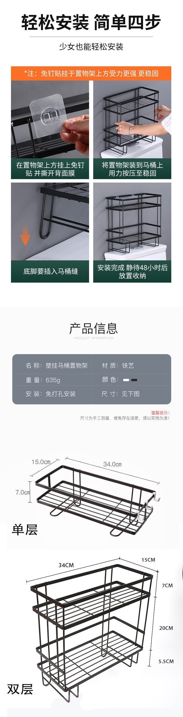 Double-Layer Black (Free Hook + Traceless Sticker)