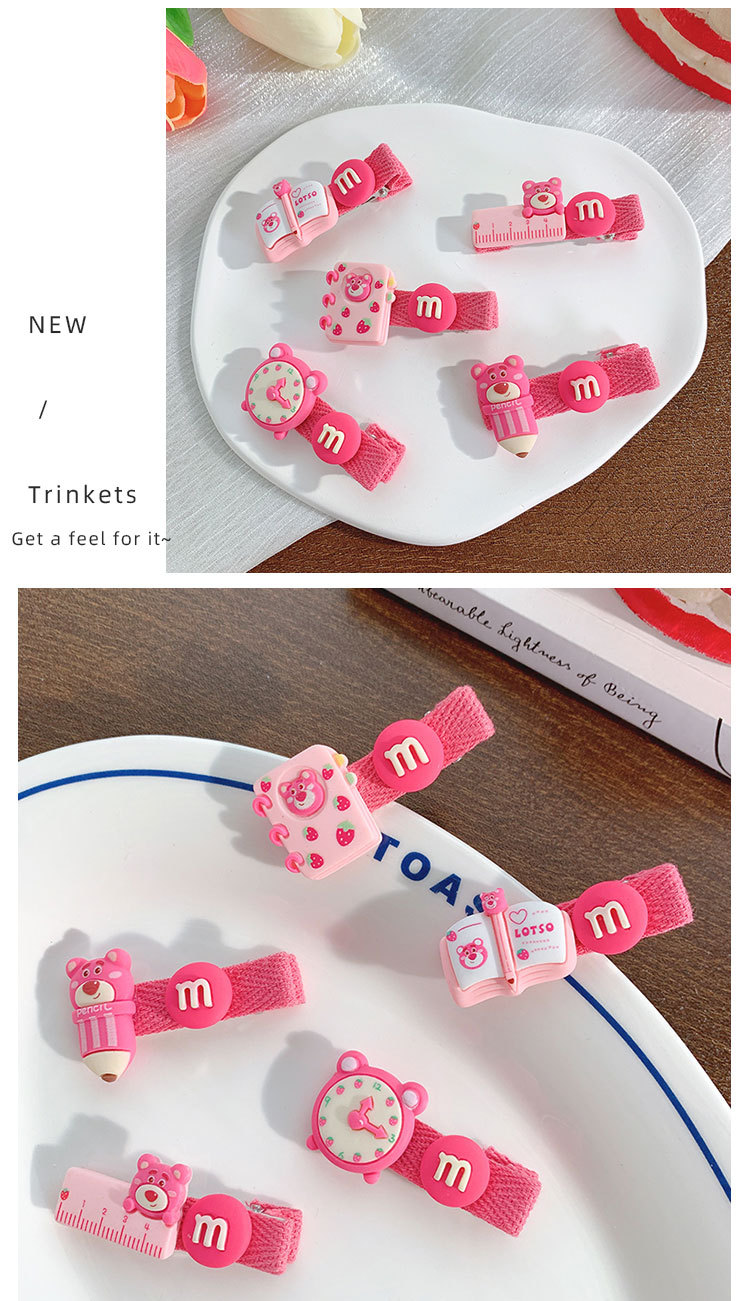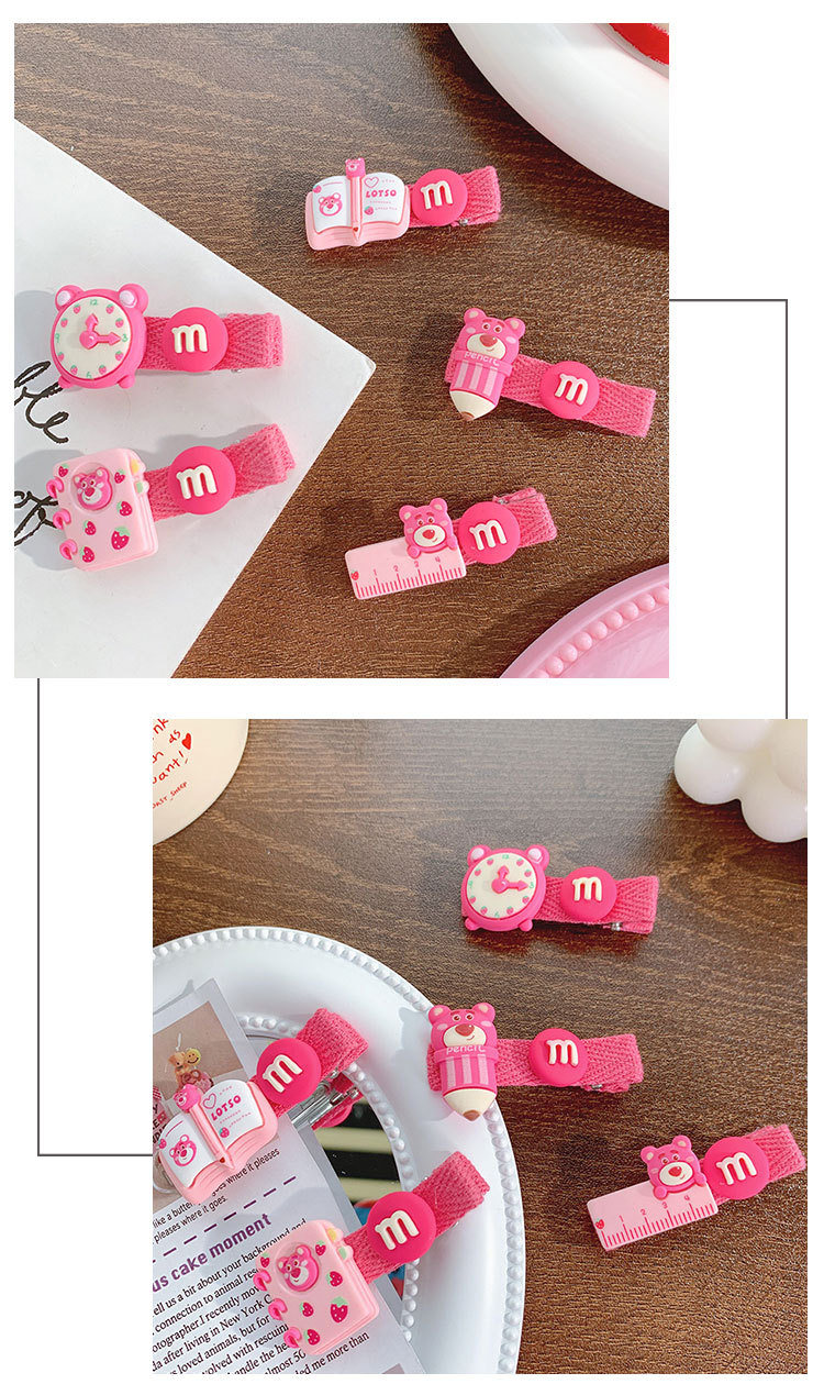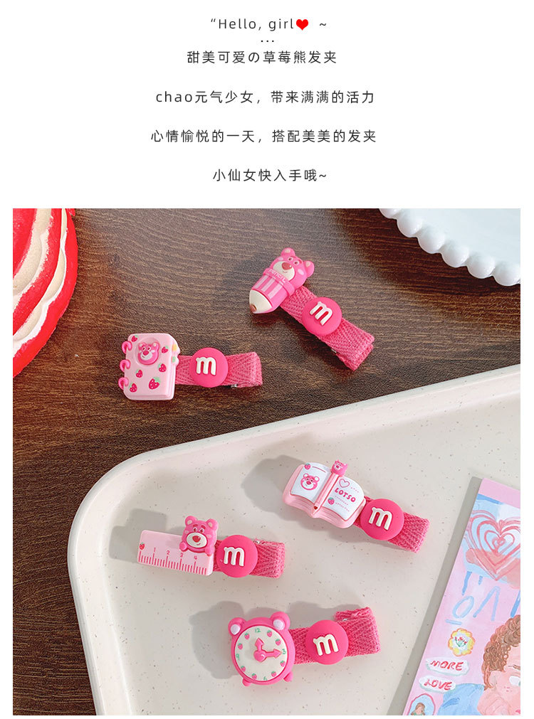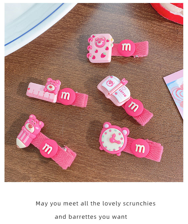 pencil-strawberry bear barrettes