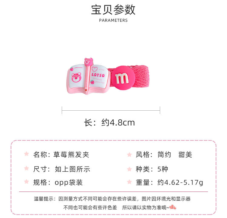 book open-strawberry bear barrettes