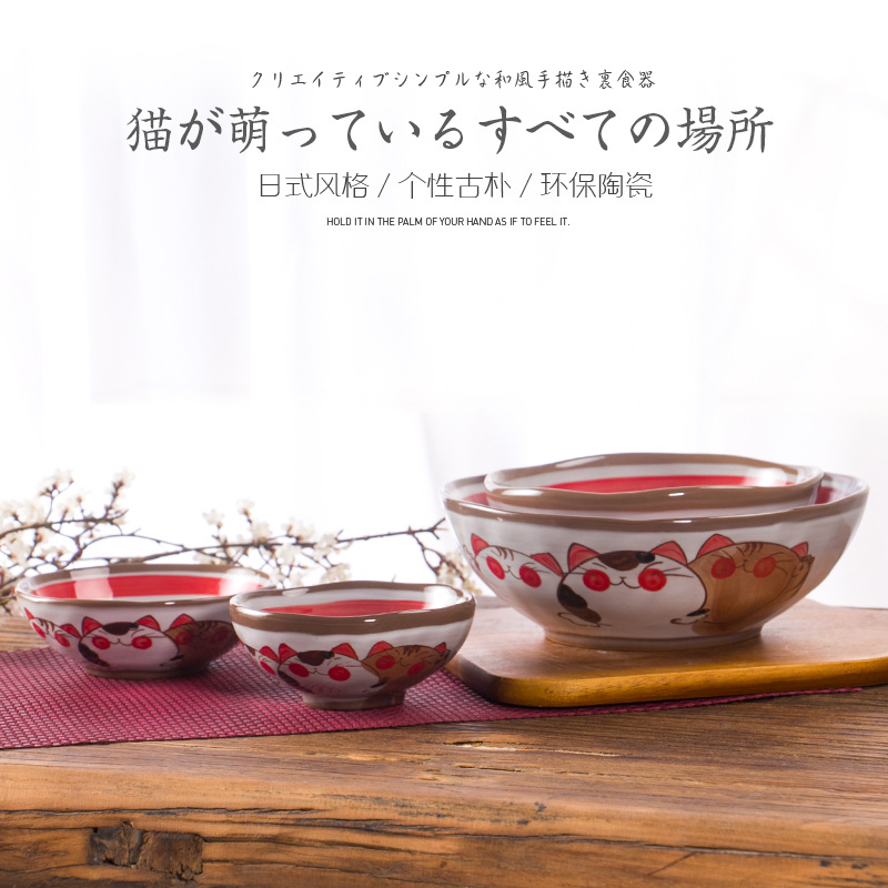 cute cat bowl japanese style pottery clay cat tableware instant noodle bowl microwaveable underglaze color soup noodle ceramic