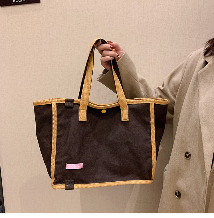 Large Capacity Canvas Bag Female 2023 New Fashion Fashion Color Contrast Temperament Handbag Student Class Commuter Tote