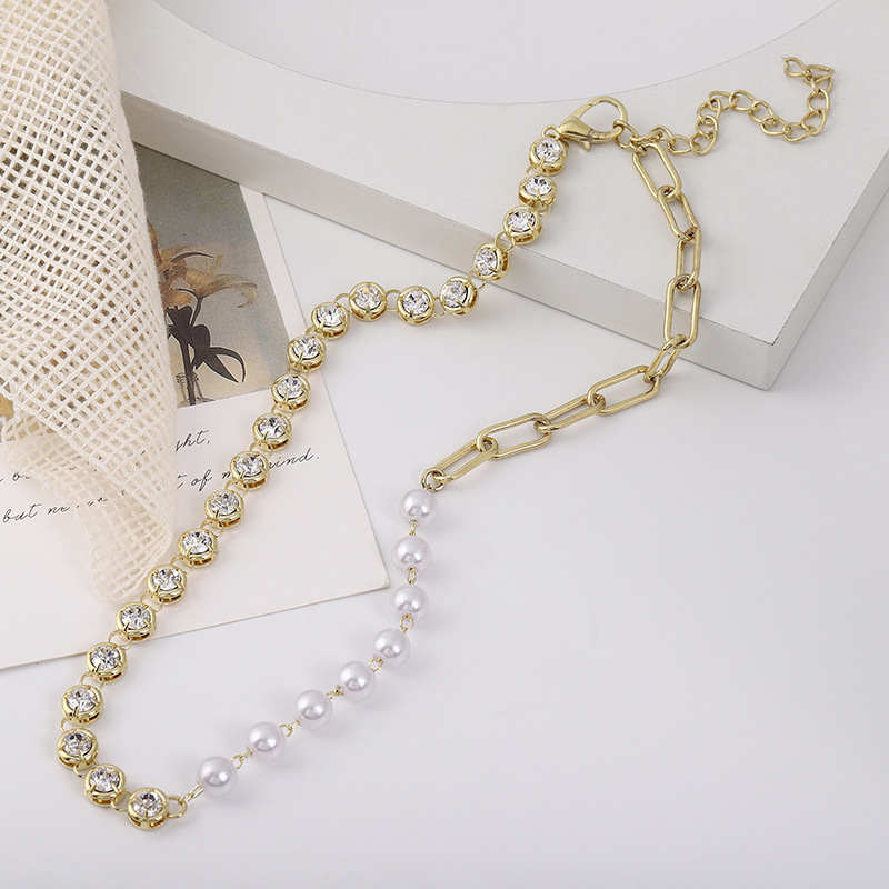 amazon necklace jewelry women's simple all-match 8 pearl chain sweater chain gold-plated necklace temperament clavicle chain