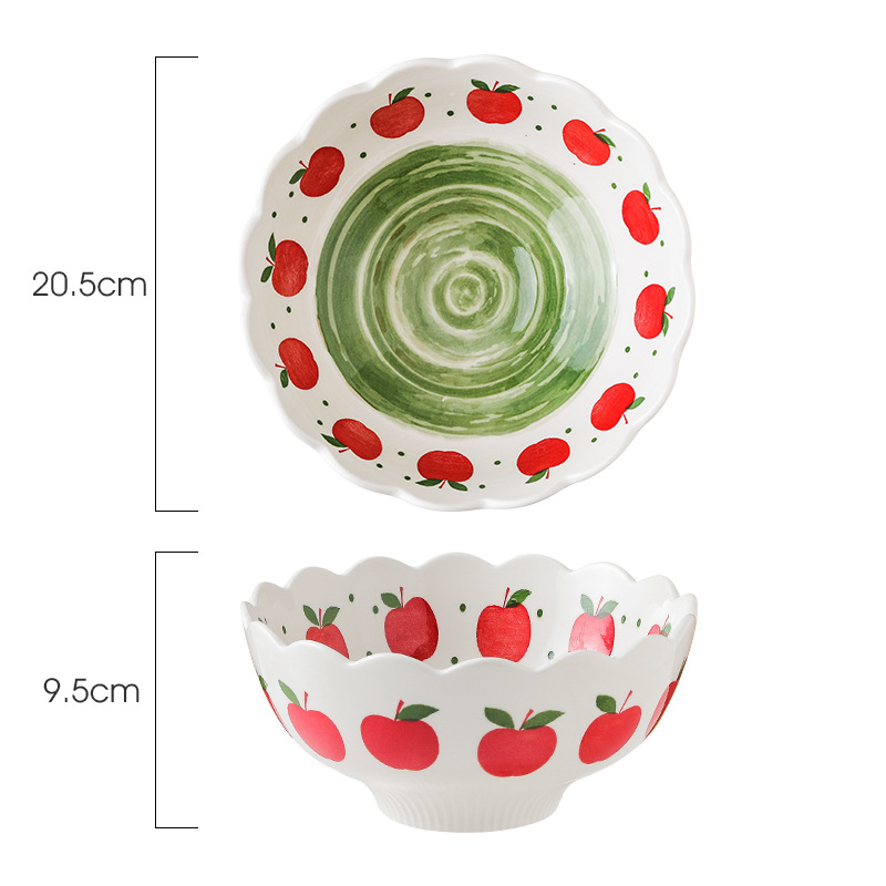 ceramic bowl wavy edge noodle bowl printed underglaze tableware soup bowl salad bowl microwaveable large bowl