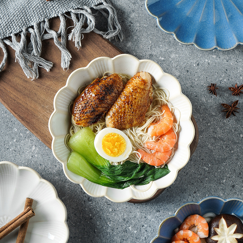 ceramic bowl japanese style tableware home salad bowl good-looking lace bowl high leg noodle bowl soup bowl