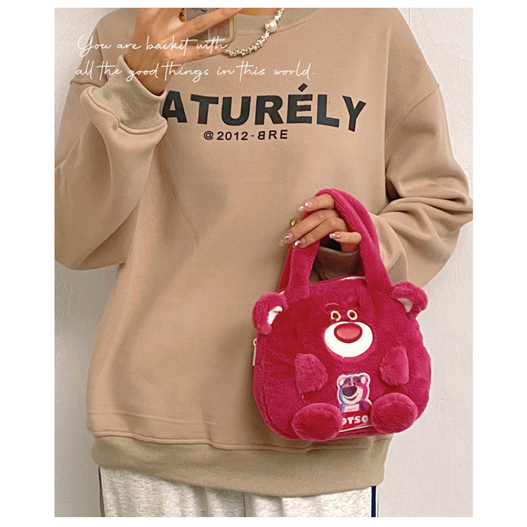 japanese ins cute girl girls heart plush hand bag student cartoon furry handbag girl's birthday gift