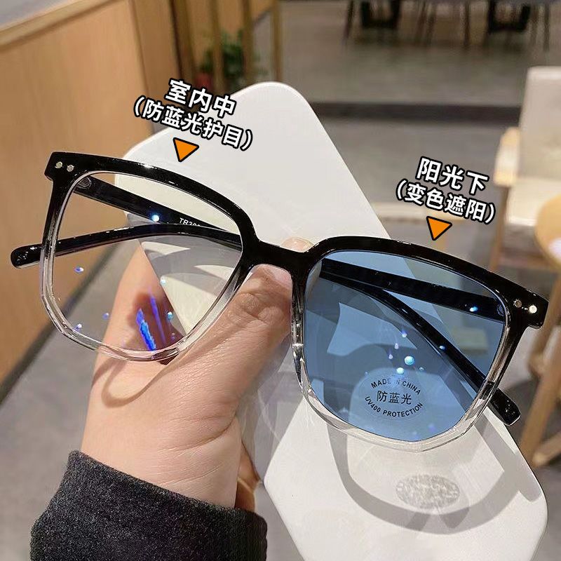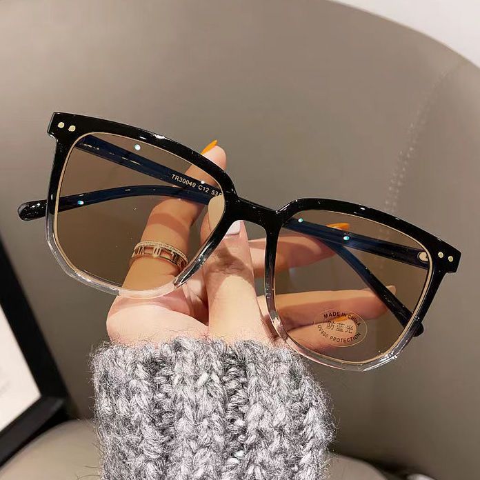 gradient bright black frame [change to light gray]; [do not change color] anti-blue light-plain glasses