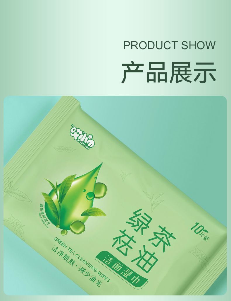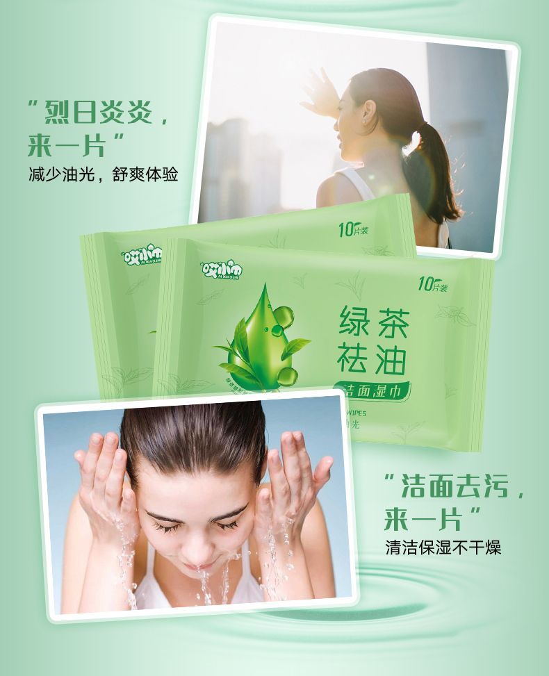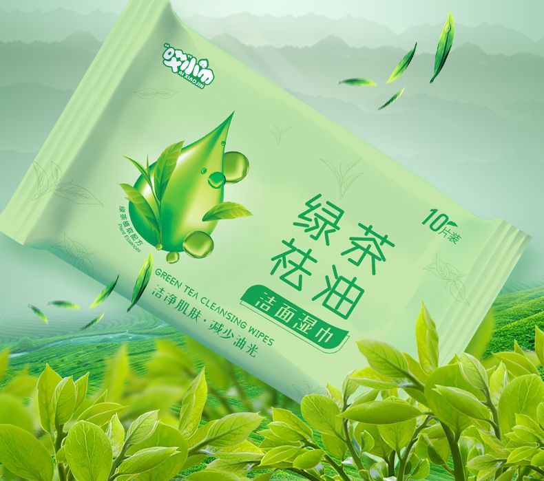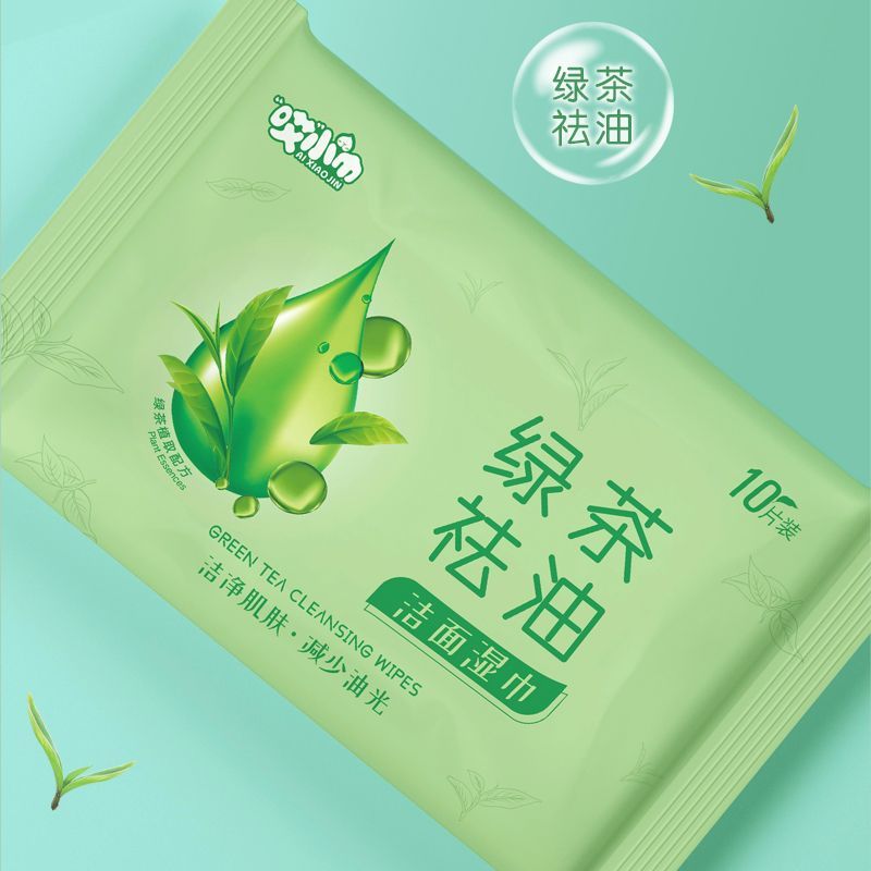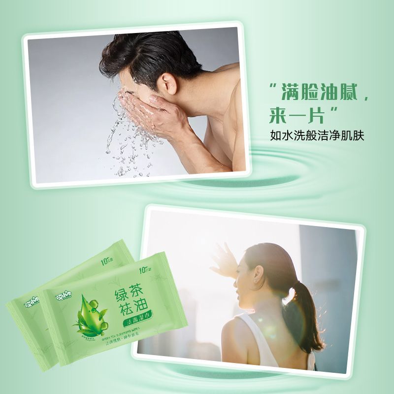 green tea oil removing cleansing wipes; [portable 10 drawers/pack] 10 packs