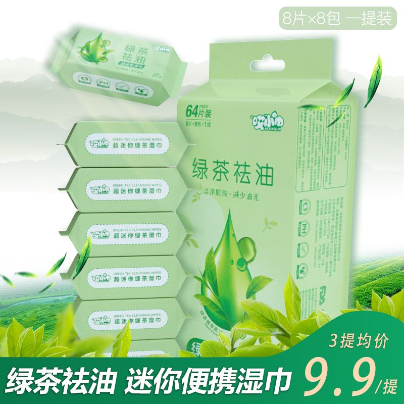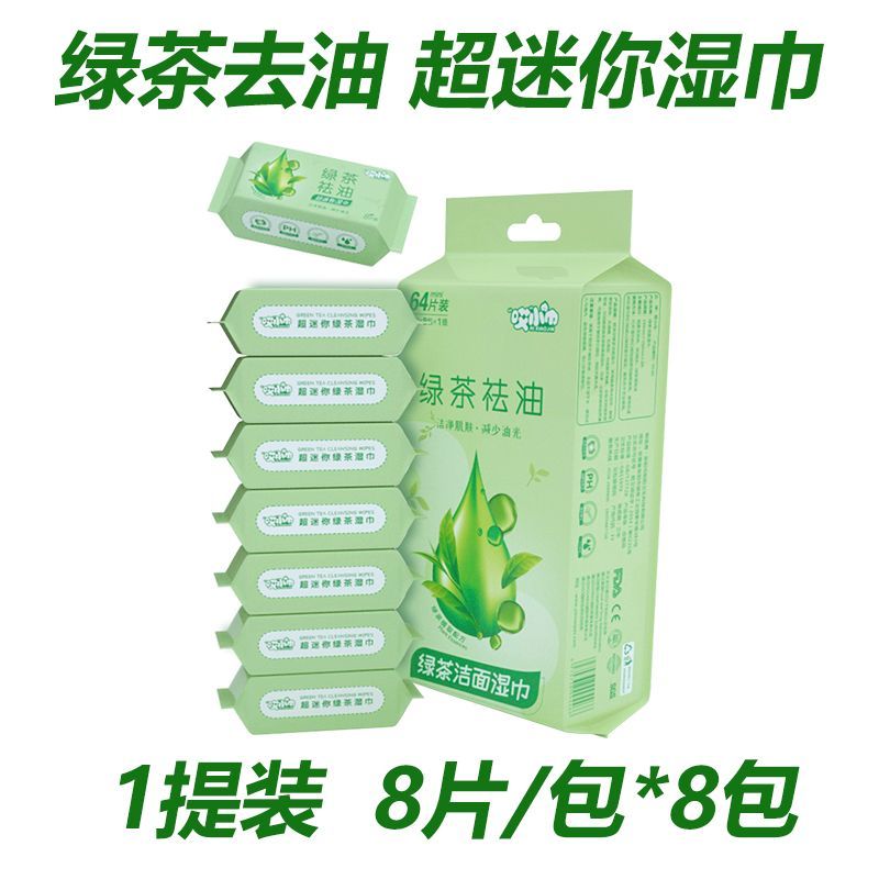 green tea oil removing cleansing wipes; [mini pack 8 drawers/bag] 1 pack 8 small bags