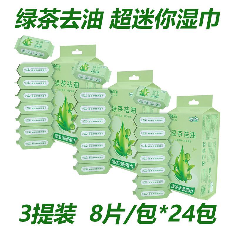 green tea oil removing cleansing wipes; [mini pack 8 drawers/pack] 3 packs 24 packs