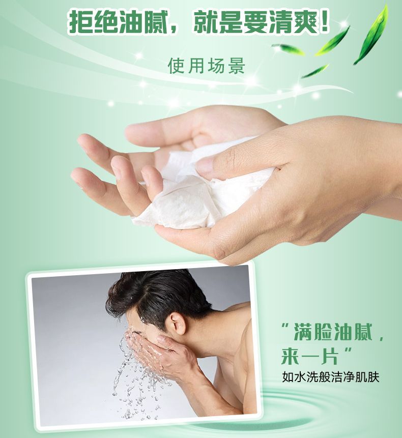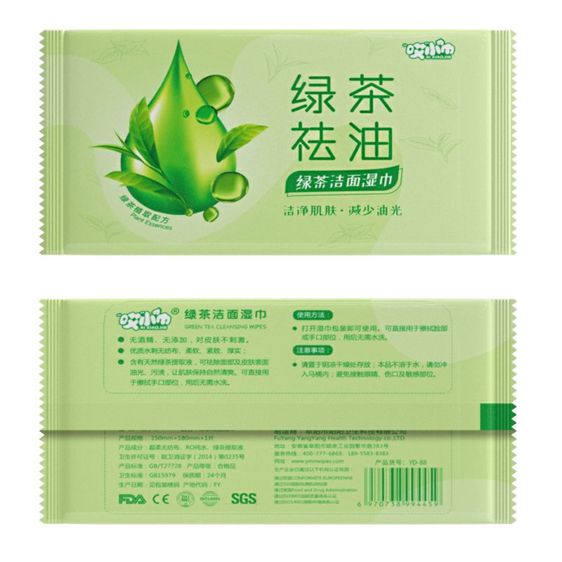 green tea oil removing cleansing wipes; [portable 10 drawers/bag] 20 packs
