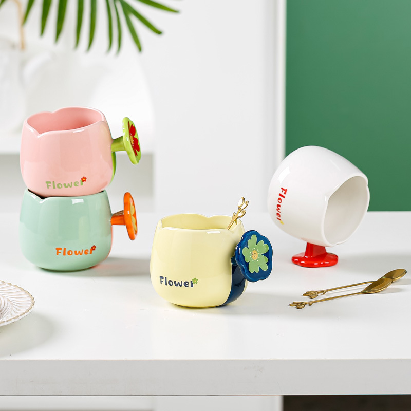 Creative Coke Bottle Ceramic Cup with Straw Cans Student Water Cup Soda Cups TikTok Same Coca-Cola Cup