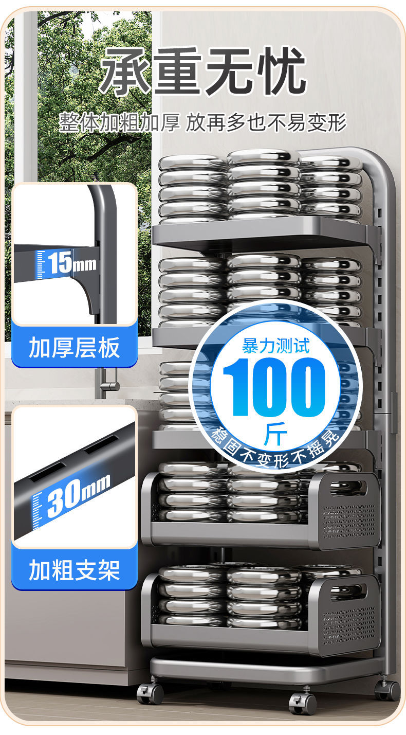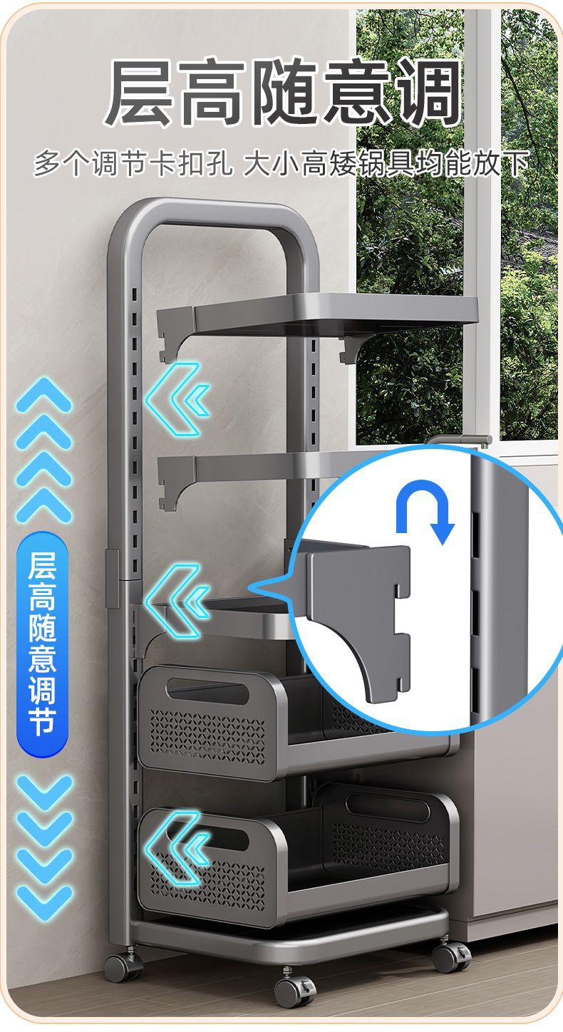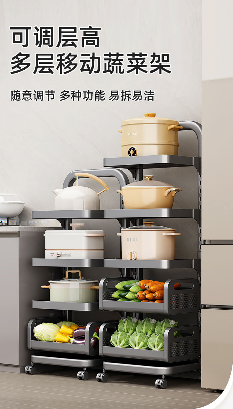 Kitchen Storage Rack Household Floor Pot Rack Multi-Layer Fruit and Vegetable Vegetable Basket Multi-Functional Movable Cookware Storage Rack