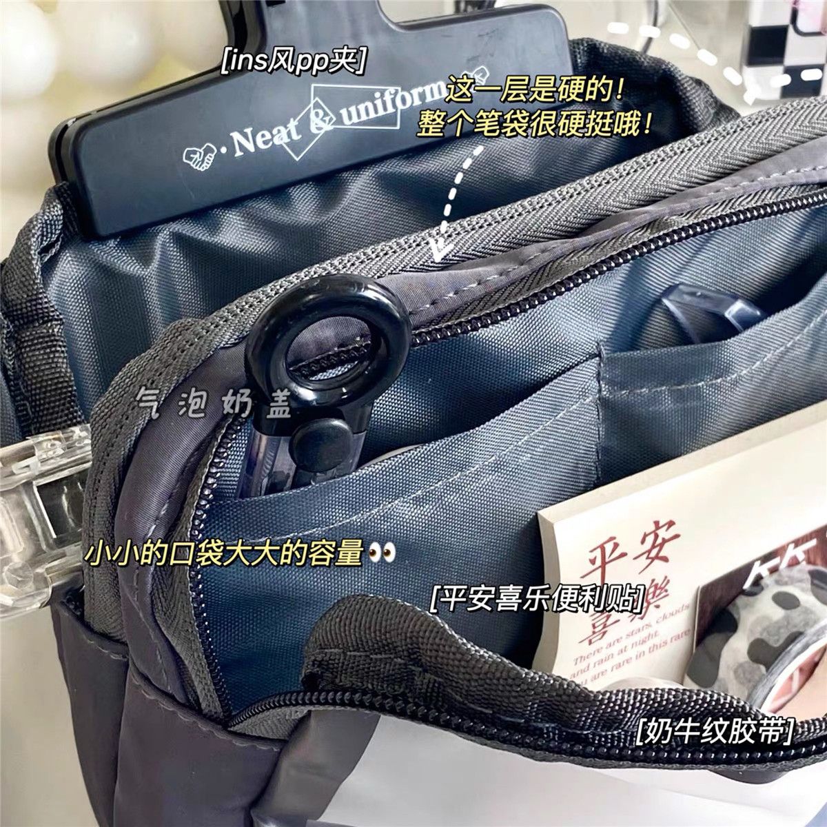 frosted black double layer pencil case; + pacha dog pendant