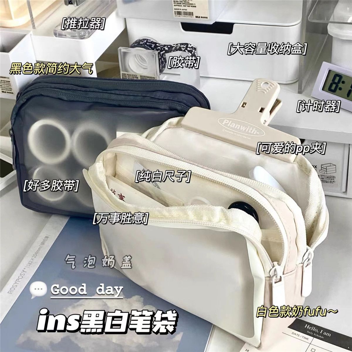 frosted white double layer pencil case; only the above styles