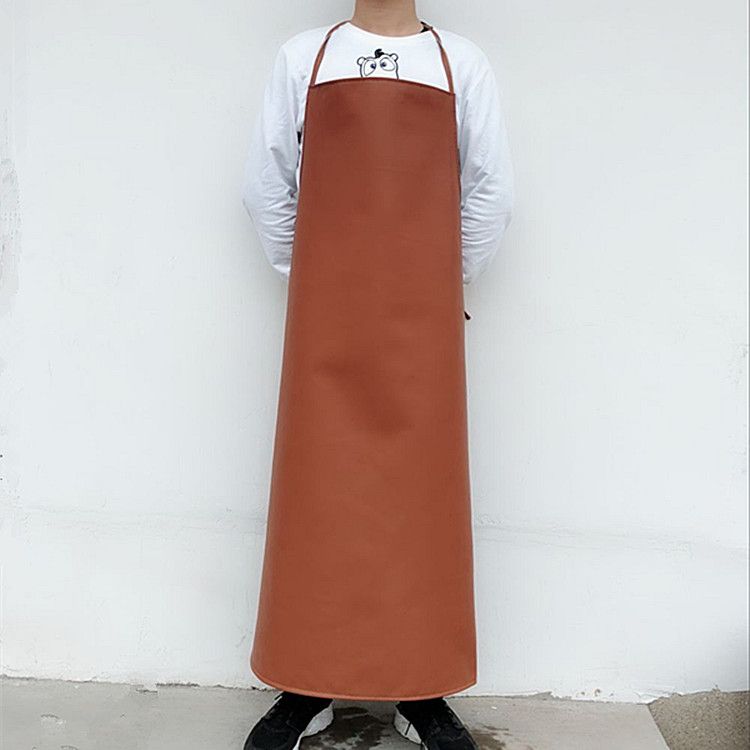 coffee color large size leather smock 108cm