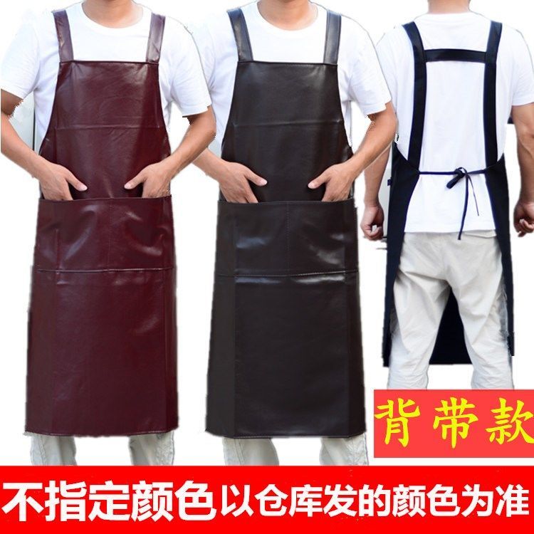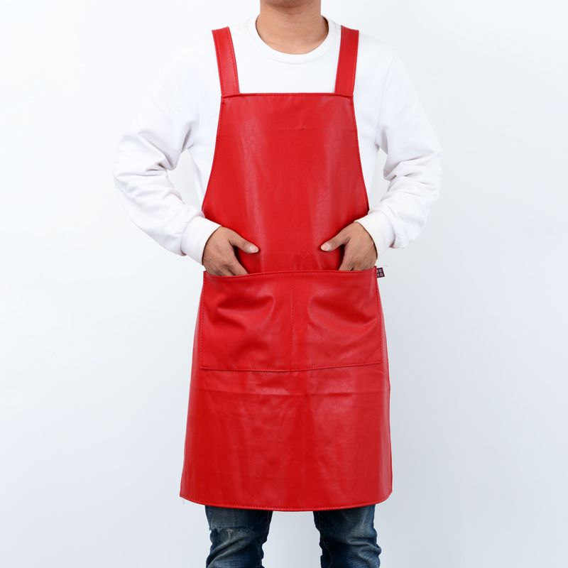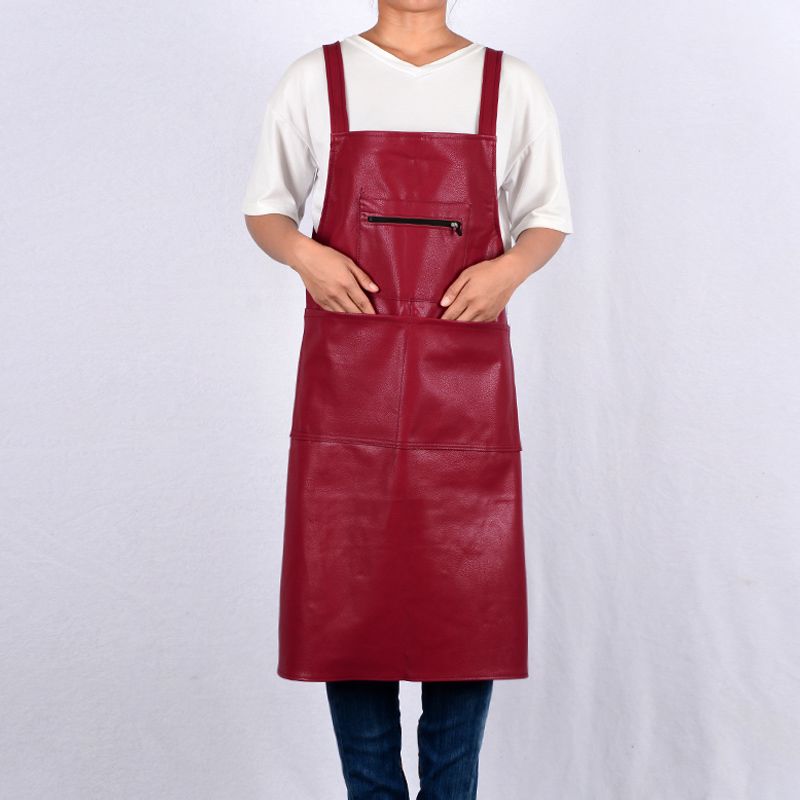 wine red large [no pocket] h-shaped strap leather smock