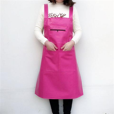rose red three pockets leather smock