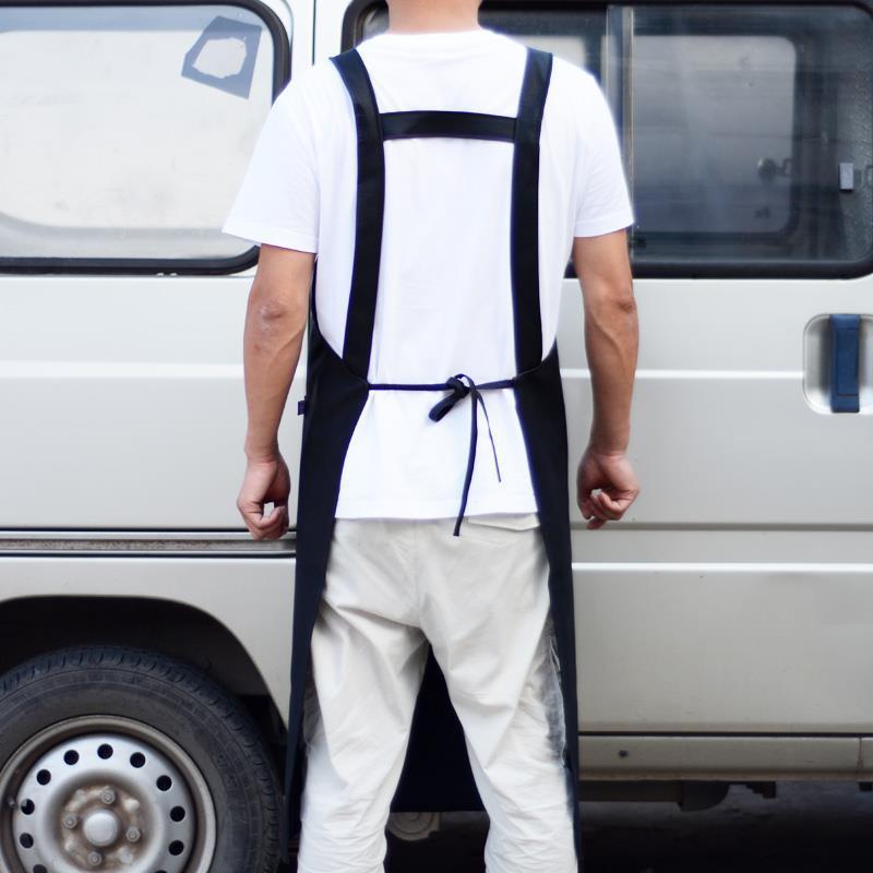 dark blue large [no pocket] h-shaped strap leather smock