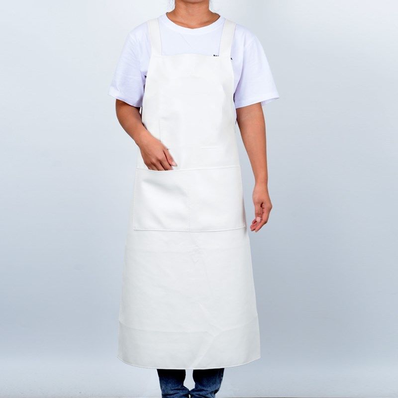 pure white three pockets leather smock