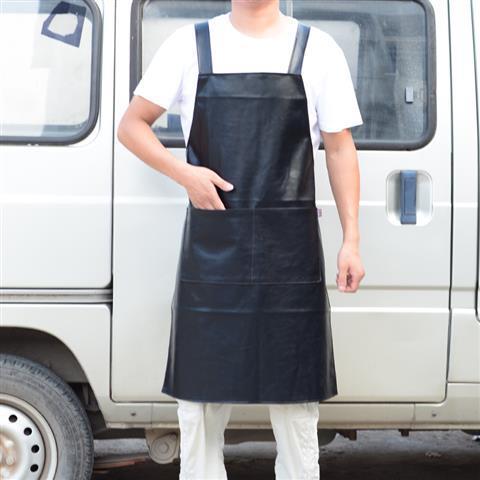 pure black large [no pocket] h-shaped strap leather smock