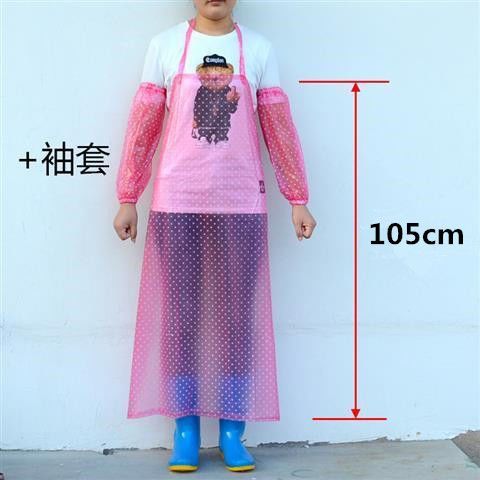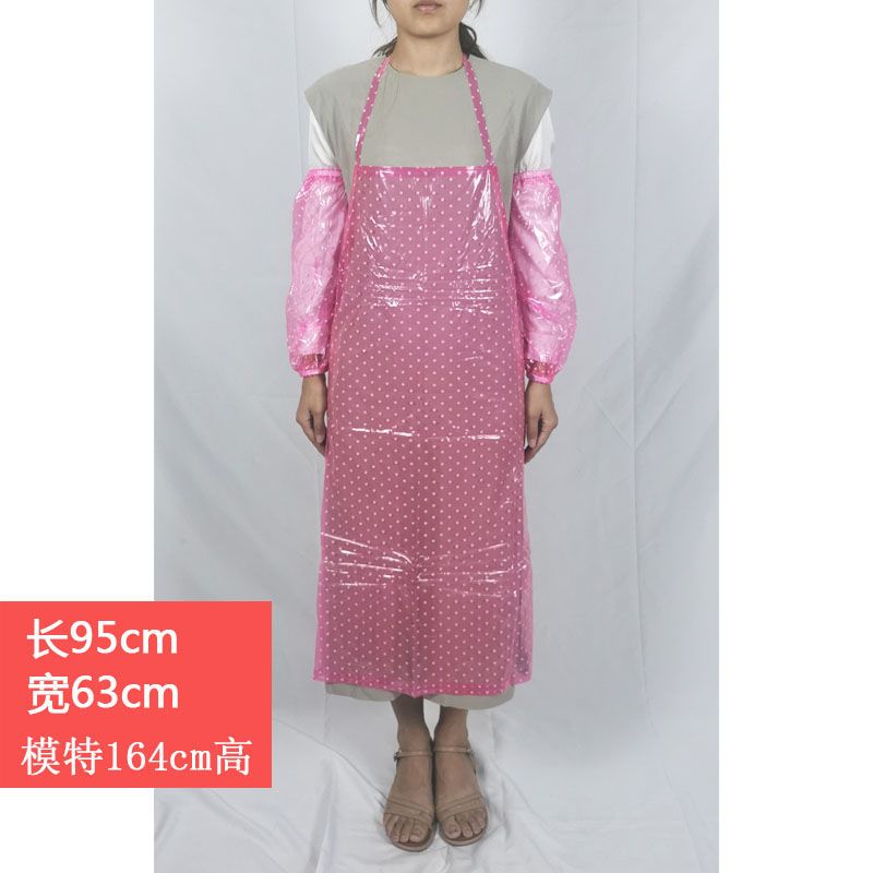 large small dot pink pvc apron; apron + sleeve 1 suit