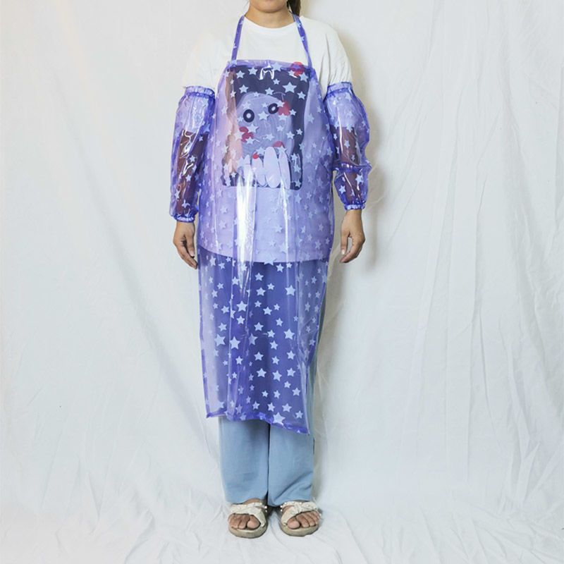 large small dot blue pvc apron; apron + sleeve 1 suit