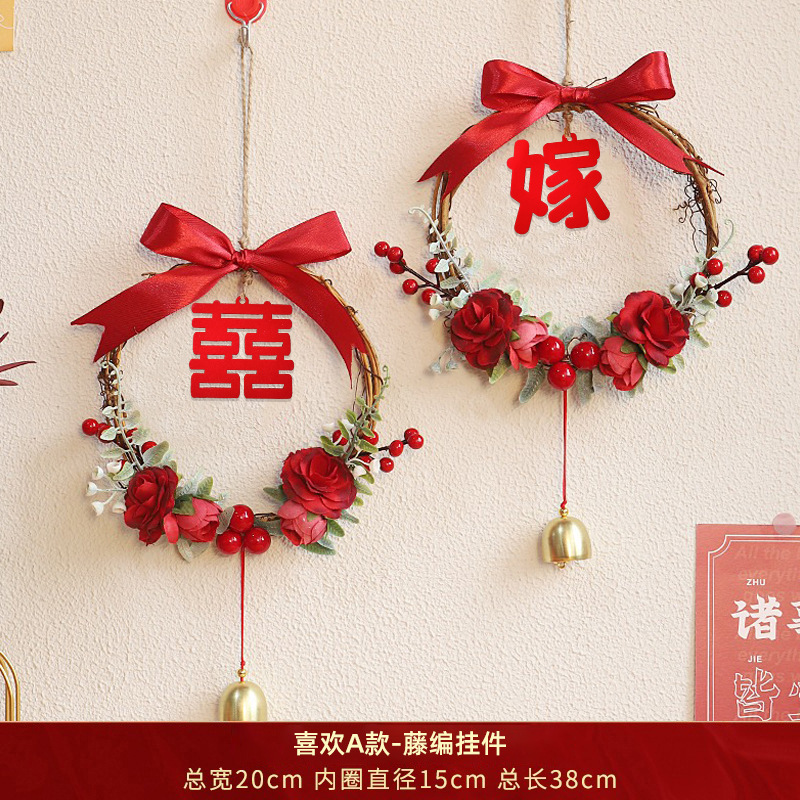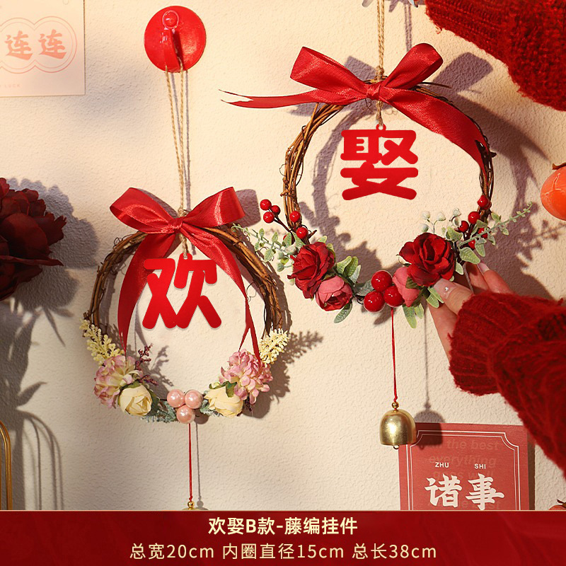 喜结良缘(喜嫁款)-藤编挂件:直径15cm