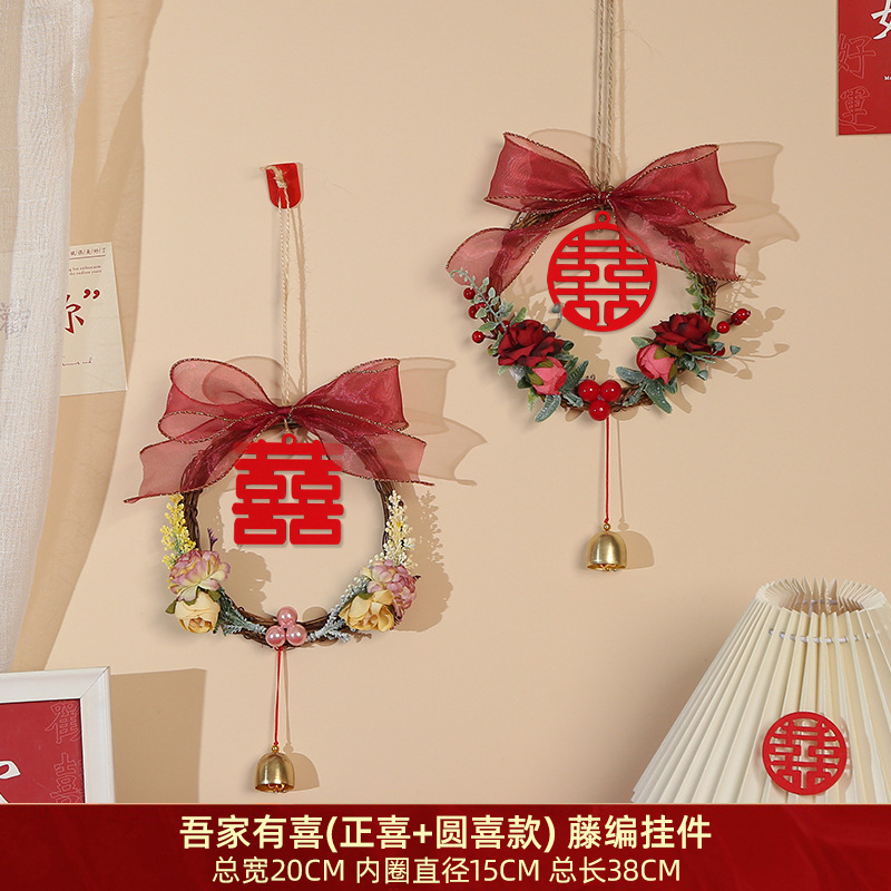 吾家有喜(喜嫁款)-藤编挂件:直径15cm