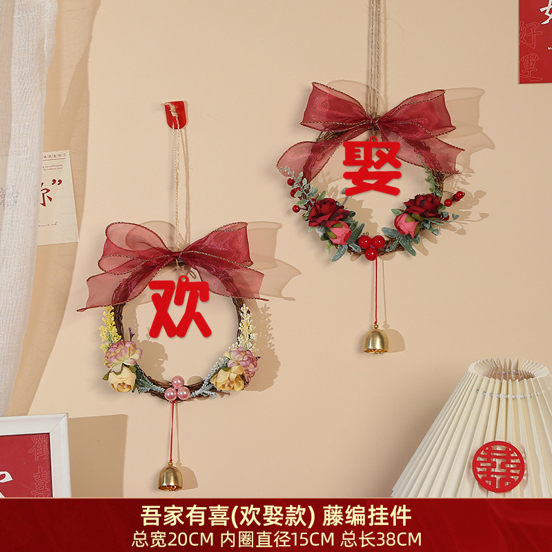 吾家有喜(欢娶款)-藤编挂件:直径15cm