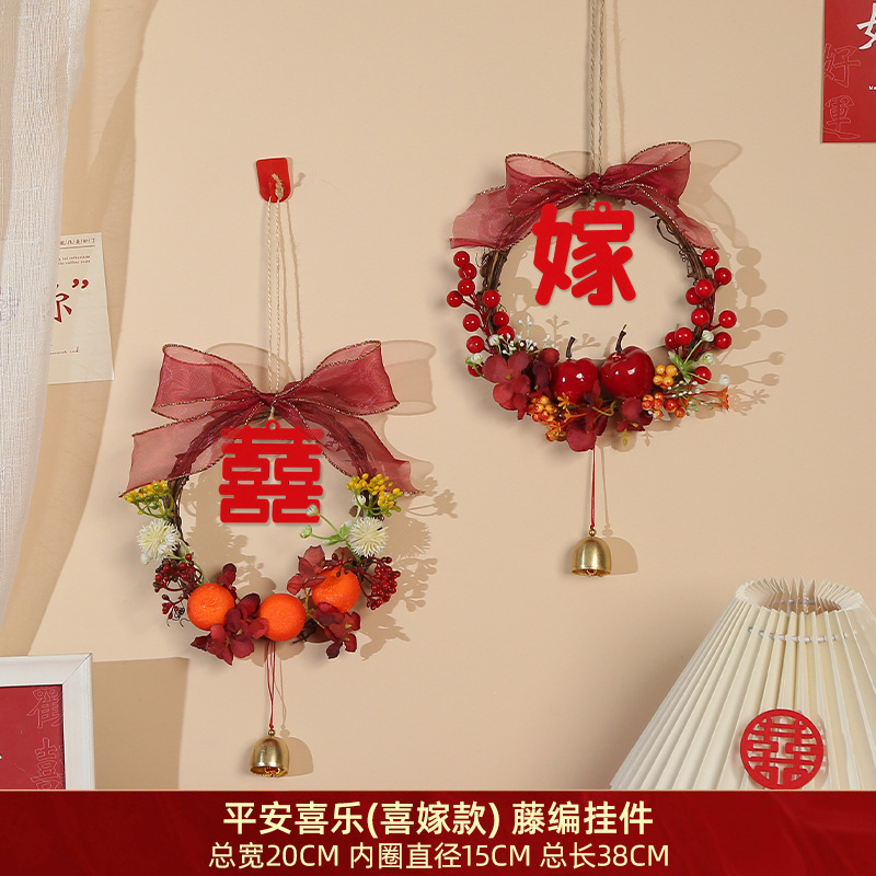平安喜乐(喜嫁款)-藤编挂件:直径15cm