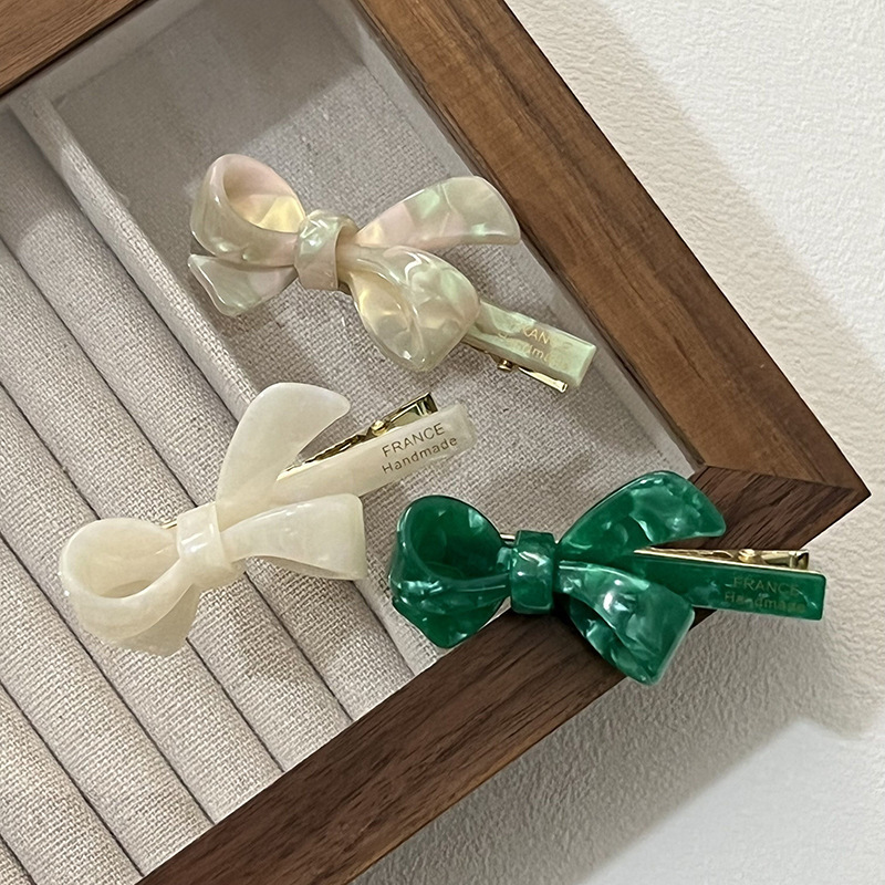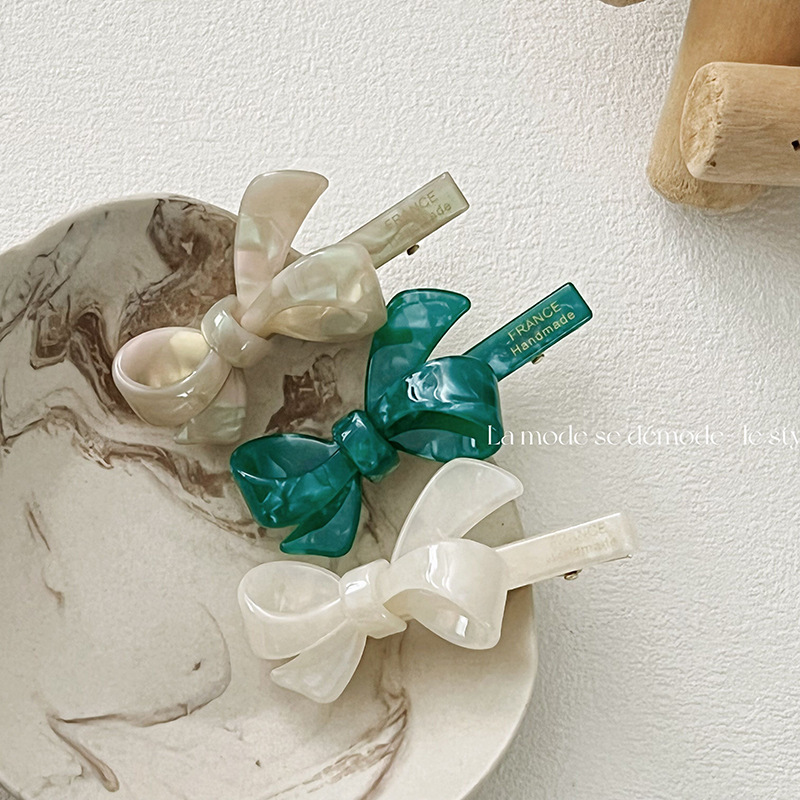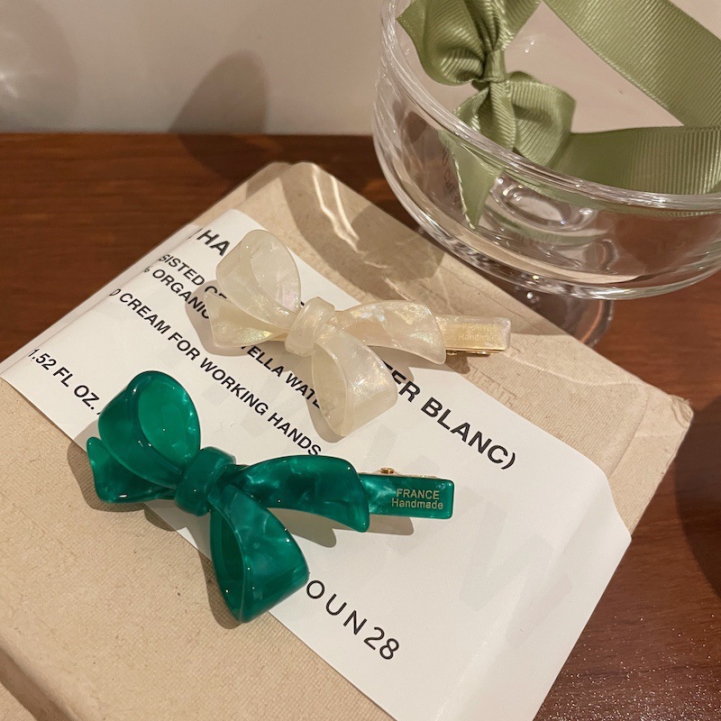 green-acetate bow barrettes (with english)