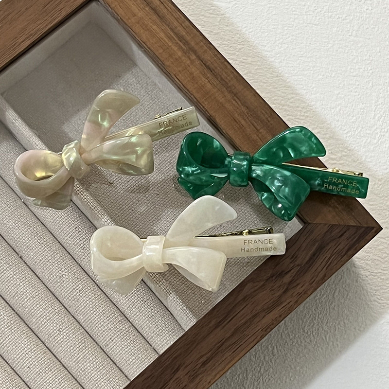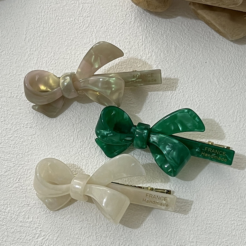 green-acetate bow barrettes