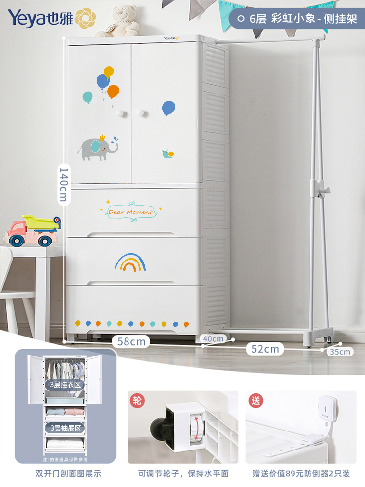 3 Drawers Side Hanger-Rainbow Elephant: Double Door Series
