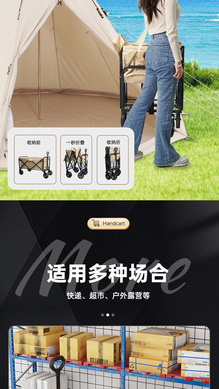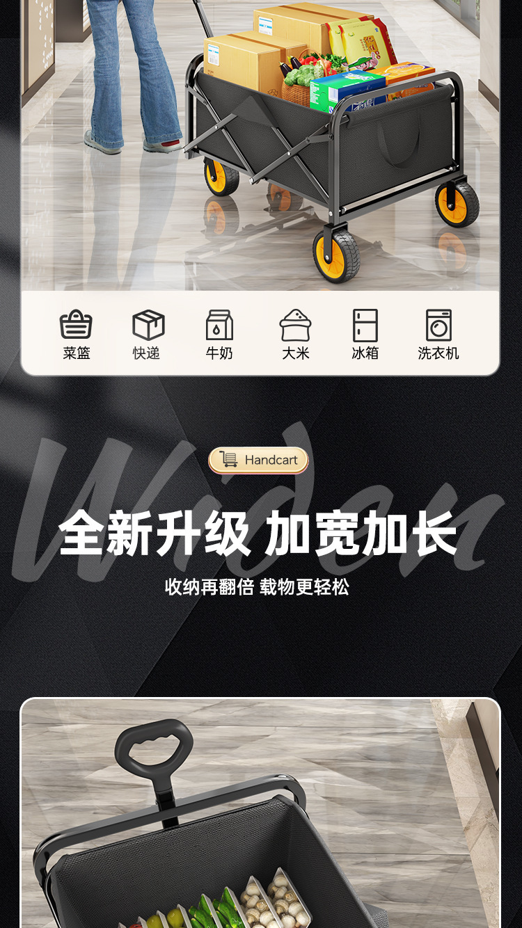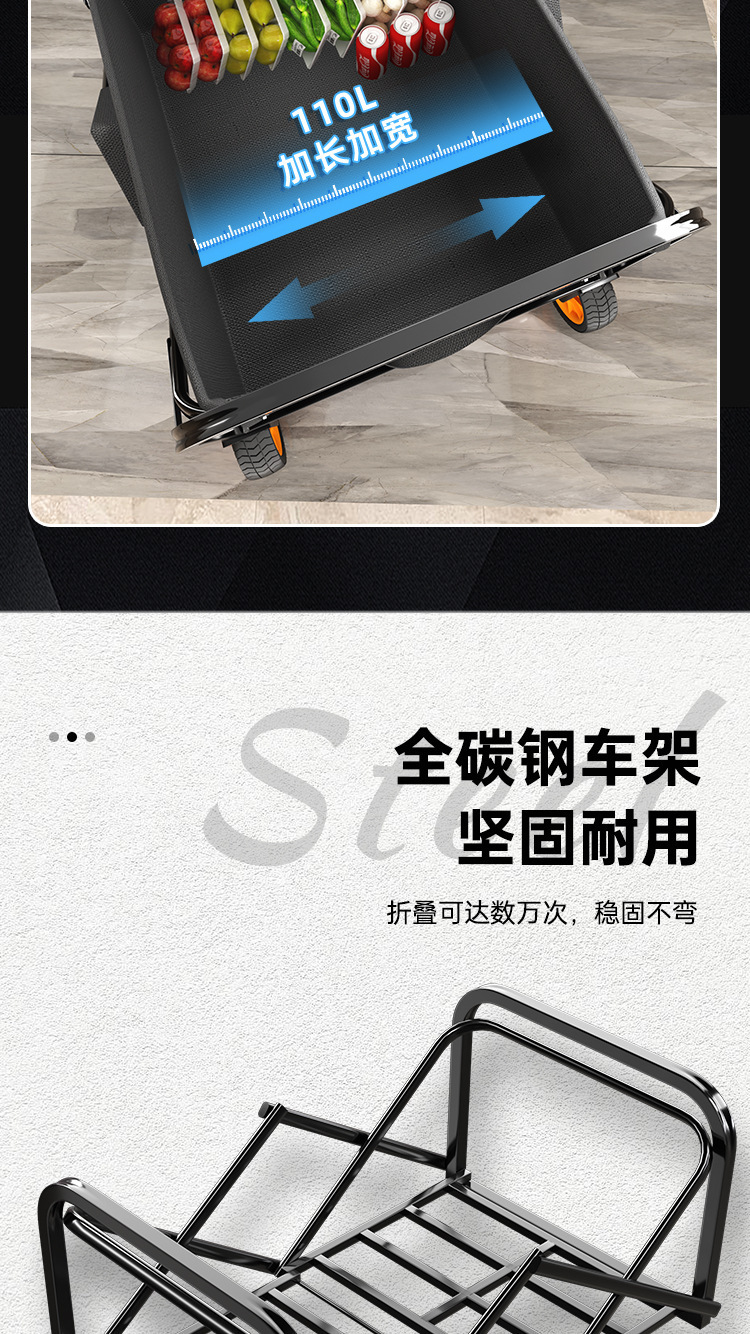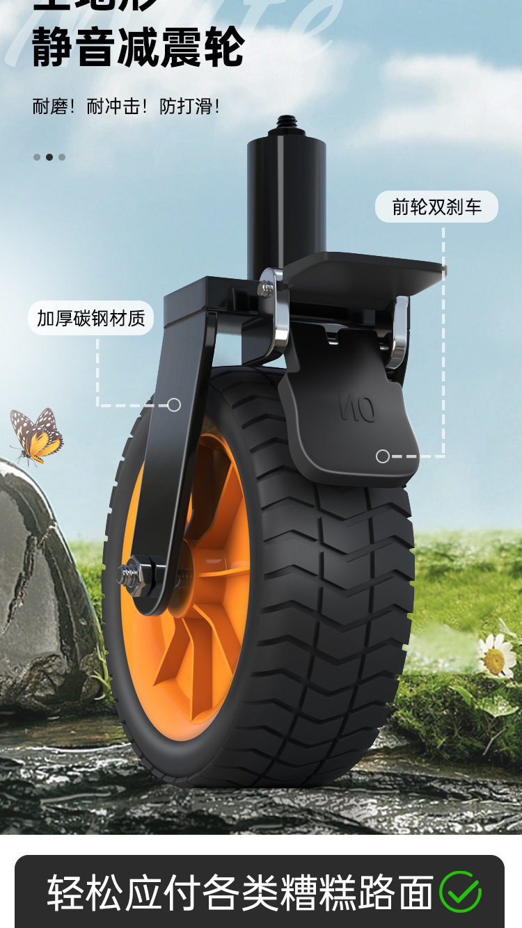 flagship [large black] 8-inch all-terrain brake wheel + 250l large capacity