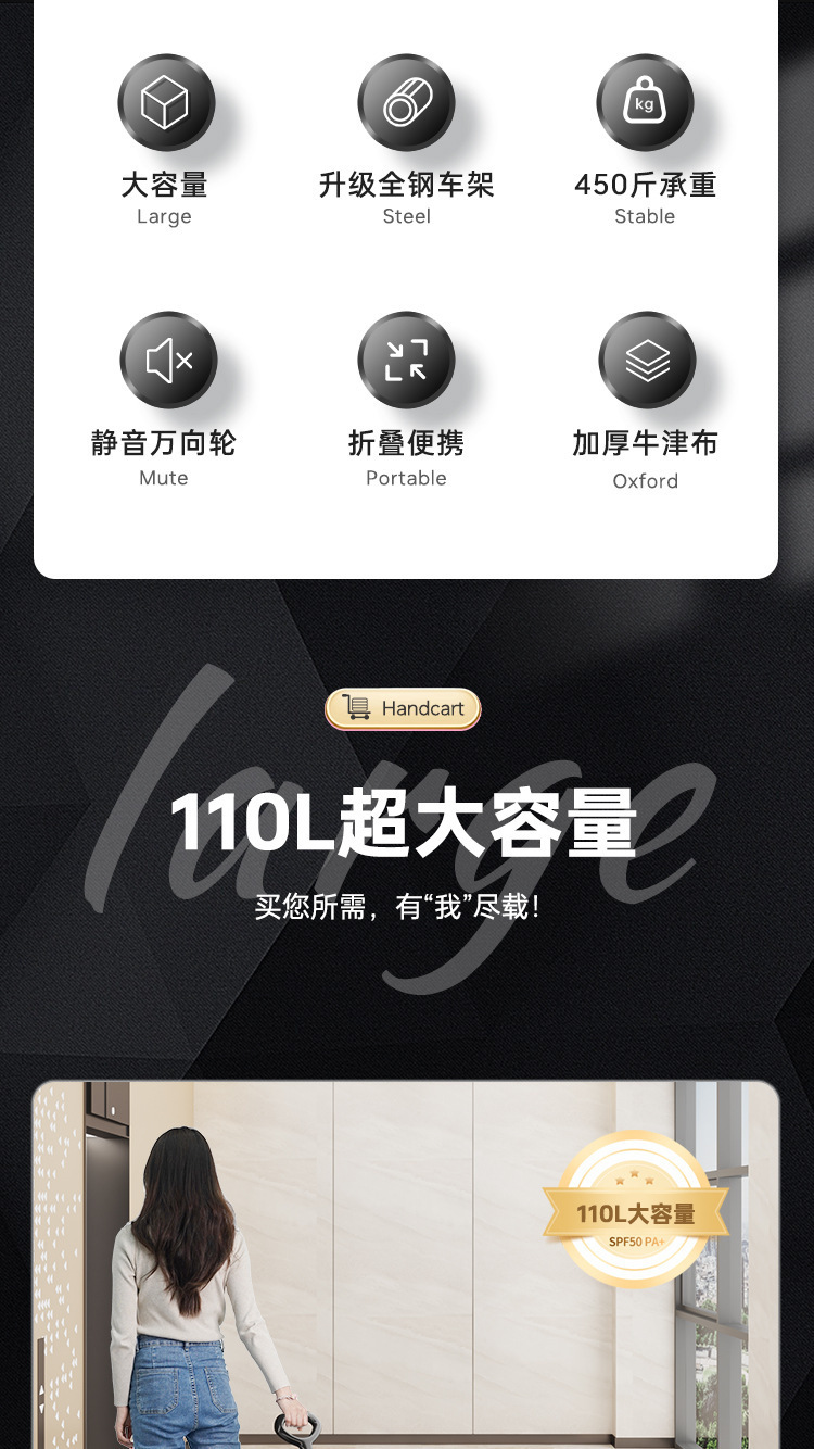 upgraded [medium black] 8-inch solid wheel + 110l large capacity