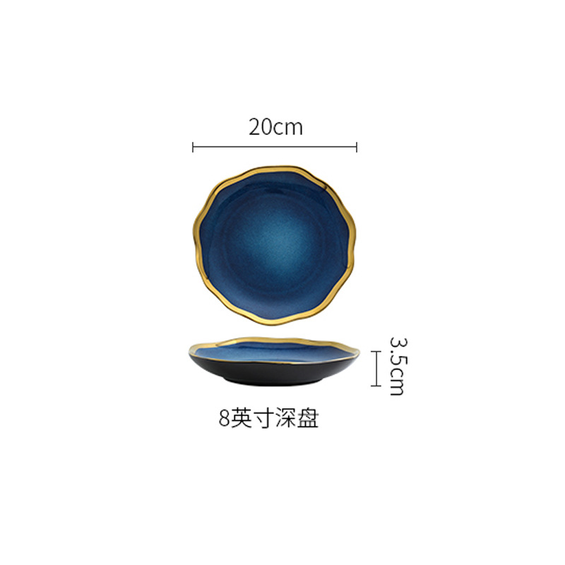 nordic light luxury blue golden edge bowls dishes saucers spoons restaurant steak plate plate household ceramic soup bowl plate