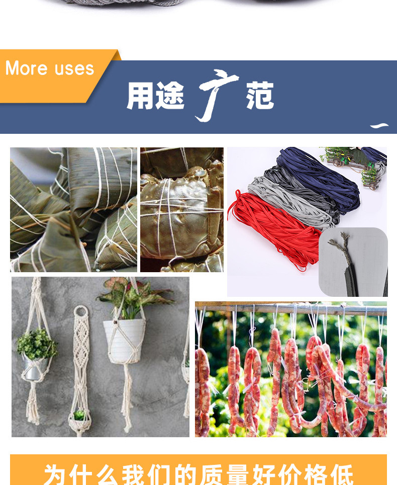 wholesale 1.5 mm-4mm core bag cotton string core rolling edge cotton string zongzi binding rope clothing accessories in stock