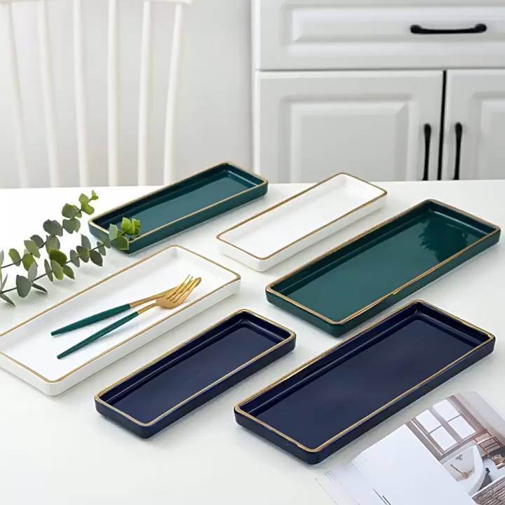 gilt edging porcelain tableware plate fruit plate restaurant sushi plate rectangular plate pastry plate