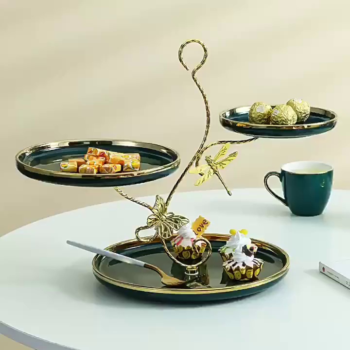 gilt edging porcelain split three-layer fruit plate multi-layer pastry plate dried fruit tray decorative tray