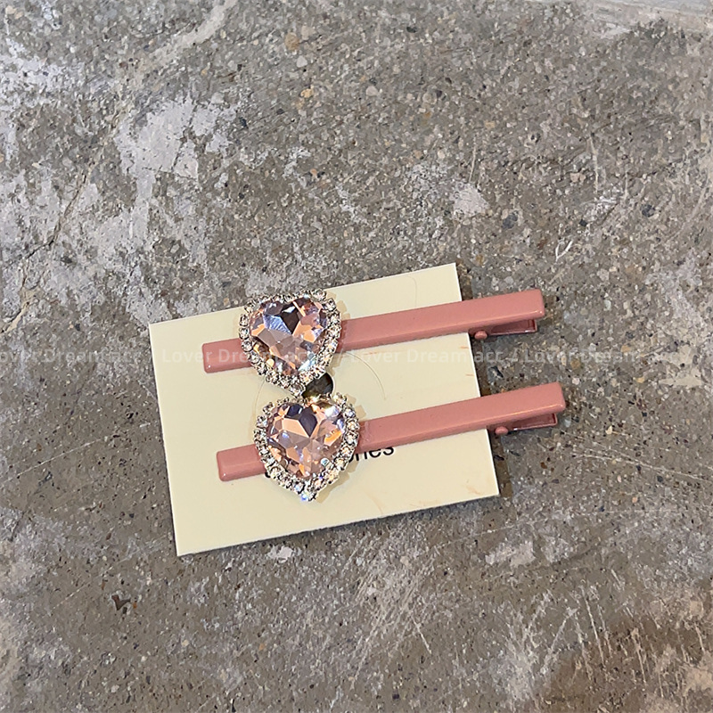 Xiaohongshu Same Style Korean Style Pink Heart Shape Rhinestone Duckbilled Hair Clip Sweet All-Matching Side Bang Clip Accessories
