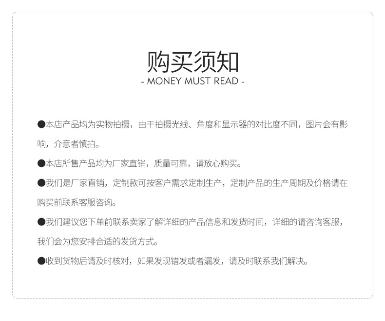 Product photography may show some color differences. Customized products are non-refundable and non-exchangeable. If the quality of the product is affected by weather or natural disasters, it is not eligible for a refund or exchange. If you cannot accept this, please do not purchase. Please contact the customer service manager, Li, at 13563087376 before placing an order.