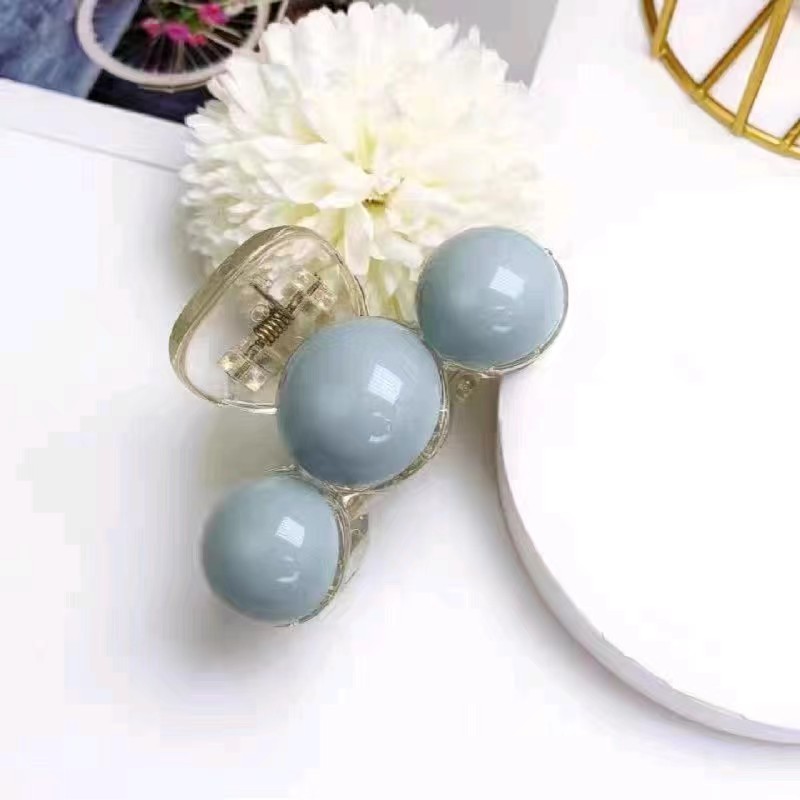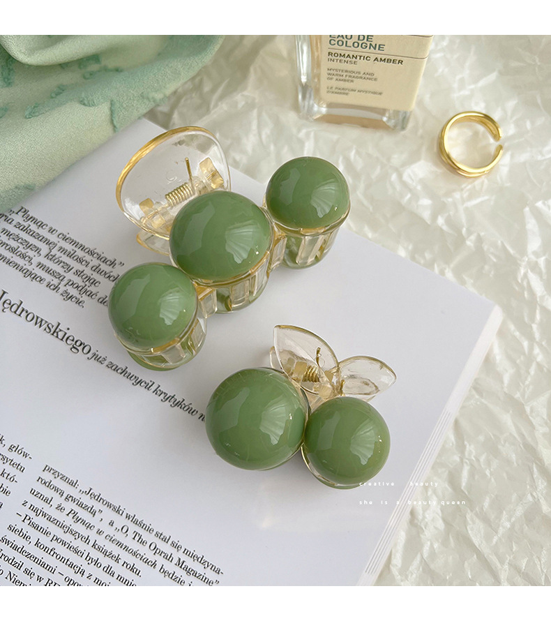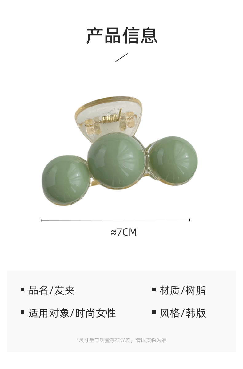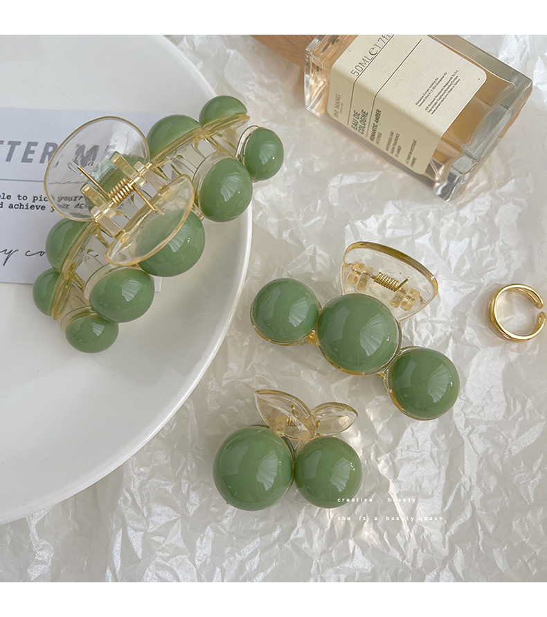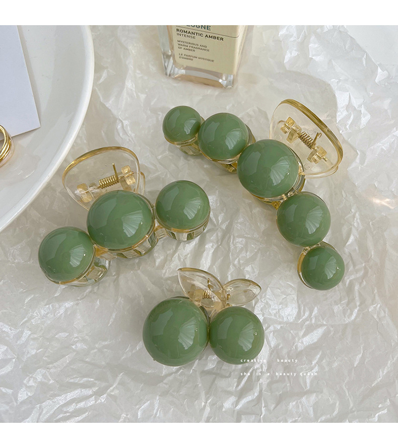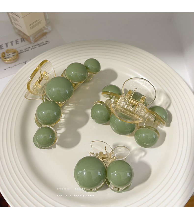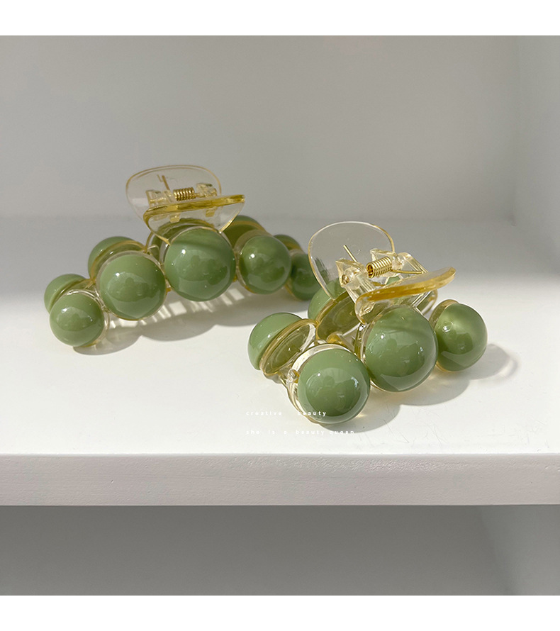 Korean Style Simple High Sense Grip Green Pearl Barrettes Elegant Large Shark Clip Women's Head Tied-up Hair Headdress