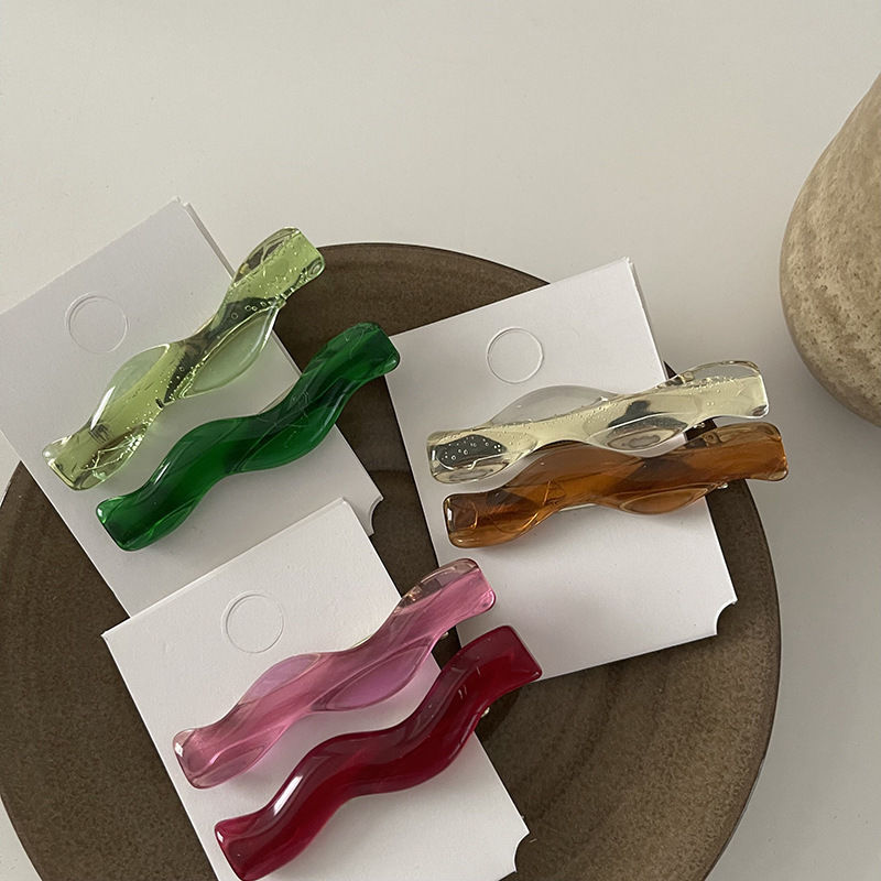 Xiaoxiao Same Retro Summer Cute and Graceful Transparent Wave Bang Clip Colorful Hairpin Simple Side Clip