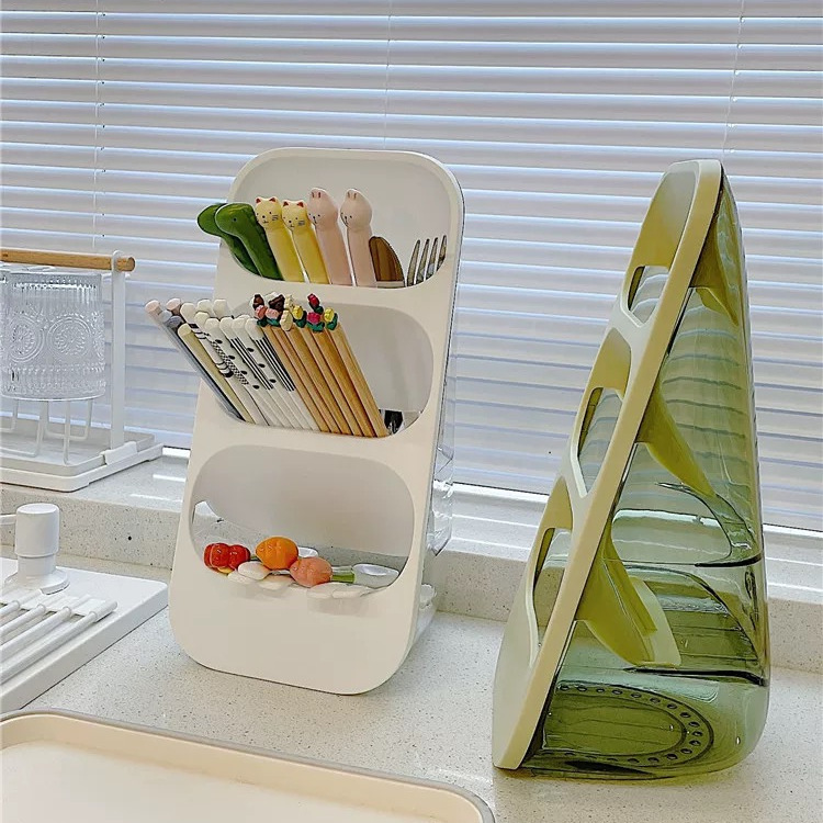 vertical three-layer cutlery storage rack [green 】