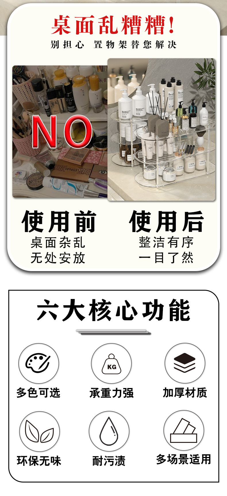 Transparent Desktop Cosmetics Storage Organizer Student Lipstick Rack Dresser Surface Skin Care Products Multi-Layer Storage Rack